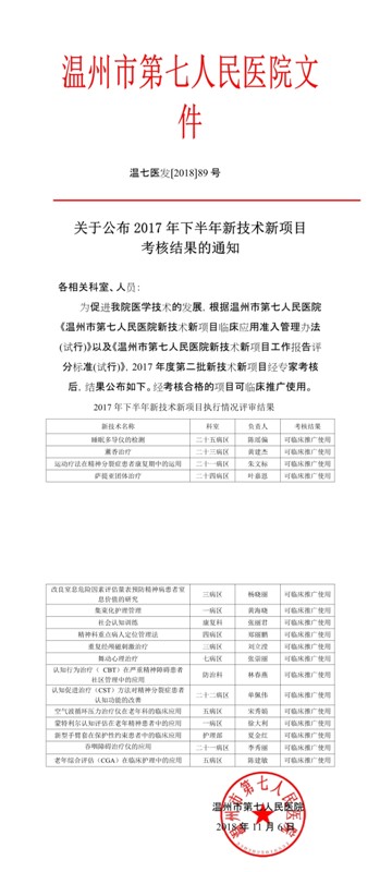 關(guān)于2017年下半年新技術(shù)新項目考核結(jié)果的通知