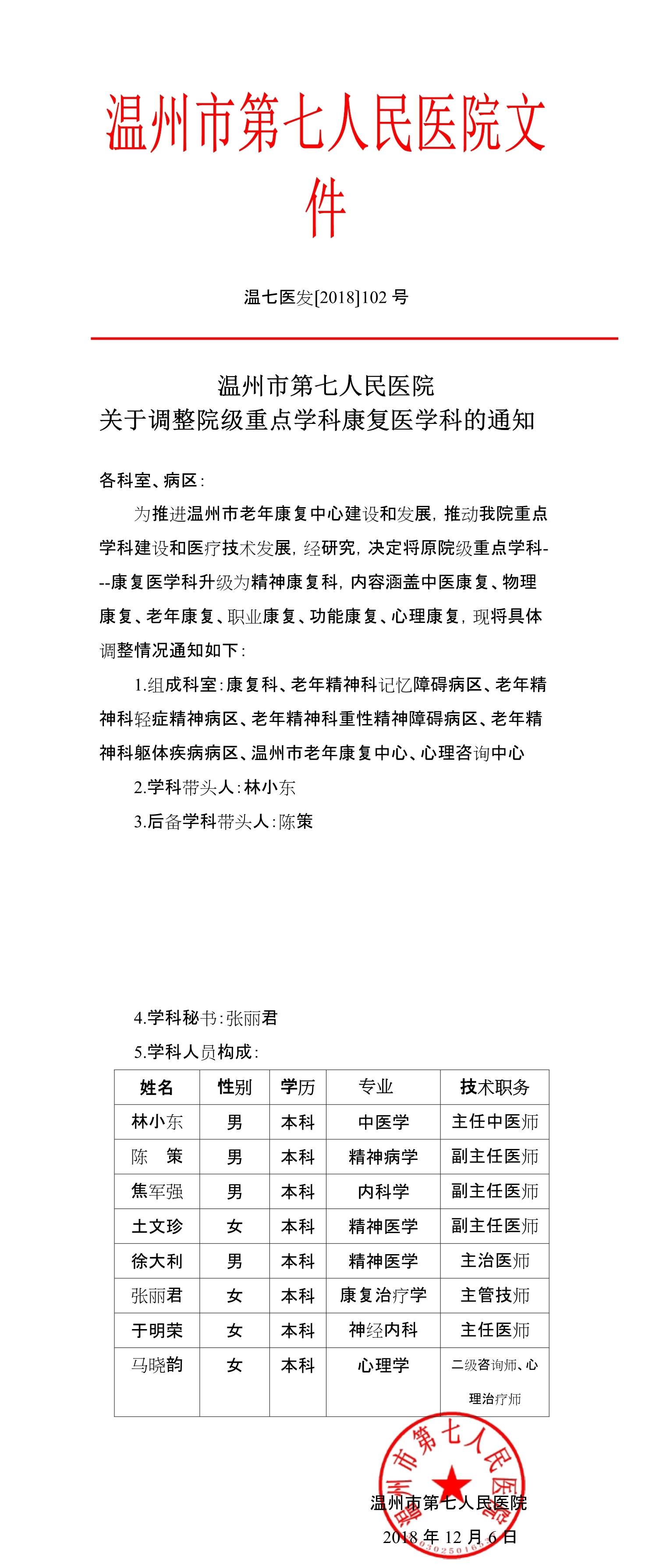關(guān)于調(diào)整院級(jí)重點(diǎn)學(xué)科康復(fù)醫(yī)學(xué)科的通知