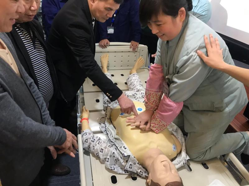 ??? 隨后,張崇麗就如何掌握心肺復(fù)蘇技術(shù)的操作要點(diǎn)及注意事項(xiàng)進(jìn)行了細(xì)致講解,并由朱愛珍護(hù)士長對“模擬人”進(jìn)行心臟復(fù)蘇演示,包括判斷是否喪失意識、有無自主呼吸、有無脈搏,并對胸外心臟按壓、清理口腔異物、開放氣道、人工呼吸等操作要領(lǐng)進(jìn)行示范。心肺復(fù)蘇是一項(xiàng)基本急救技能,是每個(gè)人都應(yīng)該掌握的技能之一。在張崇麗和朱愛珍的現(xiàn)場點(diǎn)評和及時(shí)糾正不規(guī)范操作下,大家對心肺復(fù)蘇基本技能每一個(gè)急救環(huán)節(jié)都進(jìn)行了模擬操作和反復(fù)練習(xí)。通過此次培訓(xùn),大家掌握了心肺復(fù)蘇急救要領(lǐng),急救反應(yīng)能力也得到了提高。