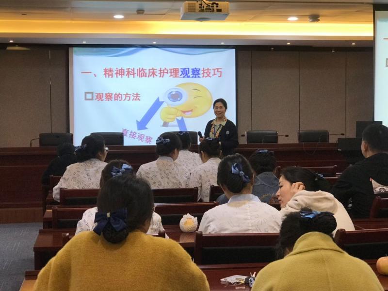????培訓(xùn)先是由張崇麗副主任護(hù)師講解“精神科觀察技巧與預(yù)見性思維”,張崇麗介紹了精神科臨床護(hù)理觀察方法、要求、內(nèi)容等,通過計(jì)劃性、整體性、技巧性、客觀性的對患者進(jìn)行直接和間接的觀察,掌握患者精神癥狀、軀體情況、心理狀態(tài)等,對患者進(jìn)行整體預(yù)見,對癥狀、體征進(jìn)行預(yù)見性識別及推理,提前預(yù)知最可能出現(xiàn)的病情變化,或可能發(fā)生的各種常見風(fēng)險(xiǎn)。從而在臨床護(hù)理實(shí)踐中,提高自身的臨床思維,增強(qiáng)護(hù)理問題的預(yù)見性,逐步建立起全面評估和護(hù)理患者的思維和行為模式。授課以提問、互動(dòng)的方式進(jìn)行,現(xiàn)場答疑解難,氣氛活躍,讓大家更好地掌握精神科臨床護(hù)理觀察技巧,靈活運(yùn)用預(yù)見性思維。
