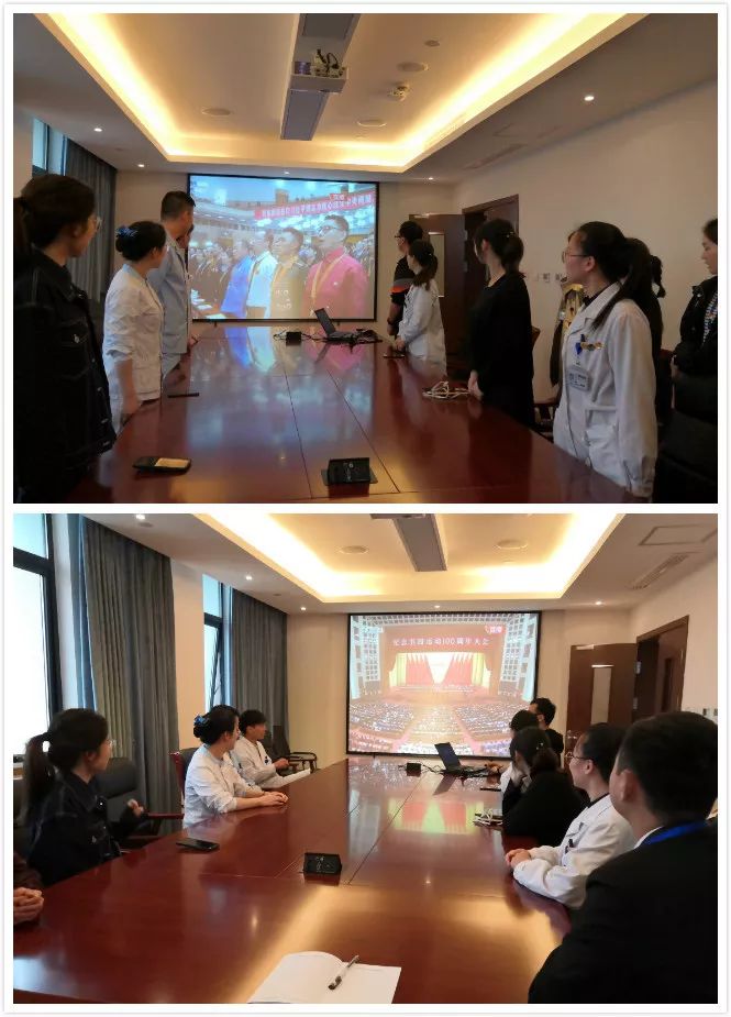 ??? 4月30日上午,團(tuán)委組織團(tuán)員青年一起觀看在北京人民大會(huì)堂隆重舉行的紀(jì)念五四100周年大會(huì),聆聽習(xí)總書記的金句良言。鼓勵(lì)青年職工在奮斗中釋放青春激情、追逐青春理想,以青春之我、奮斗之我,為民族復(fù)興鋪路架橋,為祖國建設(shè)添磚加瓦。我將無我,不負(fù)韶華。現(xiàn)場的年輕醫(yī)護(hù)人員紛紛表示,要發(fā)揚(yáng)五四精神,以朝氣蓬勃的創(chuàng)新活力,以及勇敢的責(zé)任擔(dān)當(dāng),作好本職工作。不忘初心,永遠(yuǎn)跟黨走,把個(gè)人夢想與實(shí)現(xiàn)中華民族偉大復(fù)興中國夢緊緊地聯(lián)系在一起。